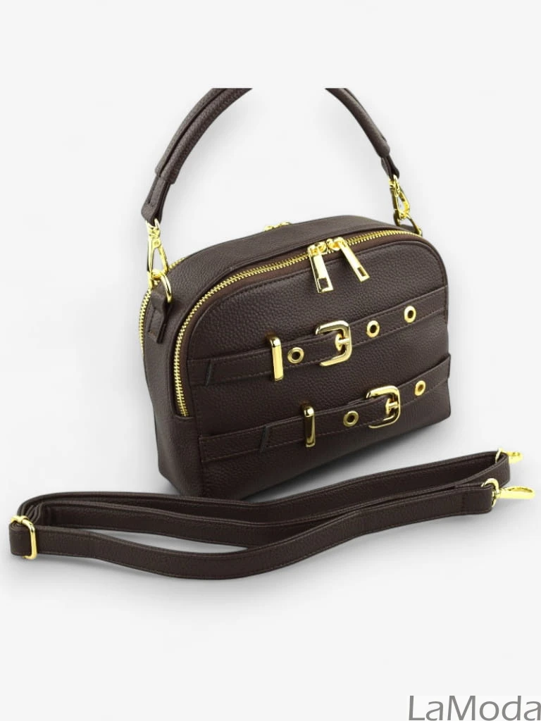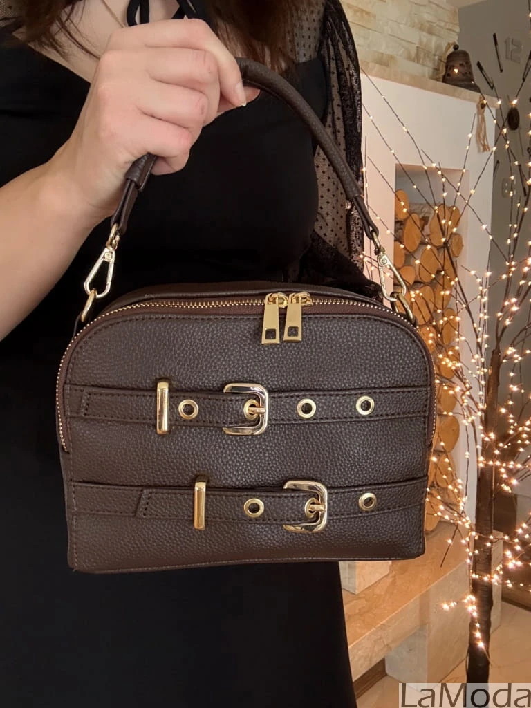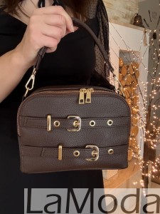 Torebka damska kuferek czekoladowy z klamerkami GRACE LA1090-2
