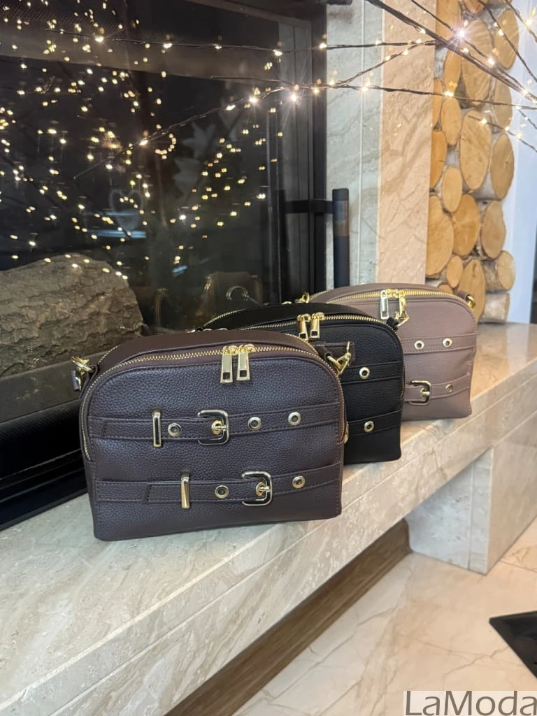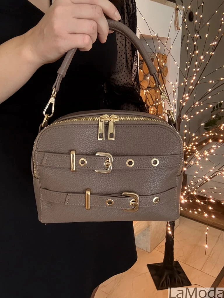 Torebka damska kuferek mokka z klamerkami GRACE LA1090-2
