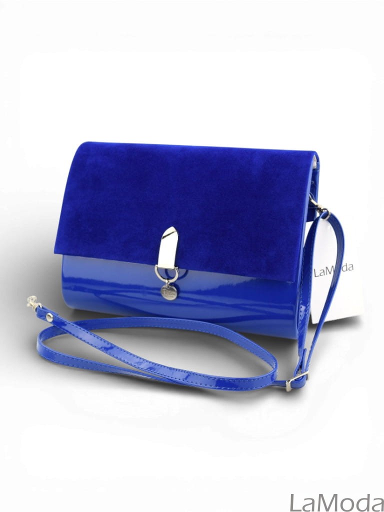 Stylowa kopertówka w odważnym chabrowym kolorze