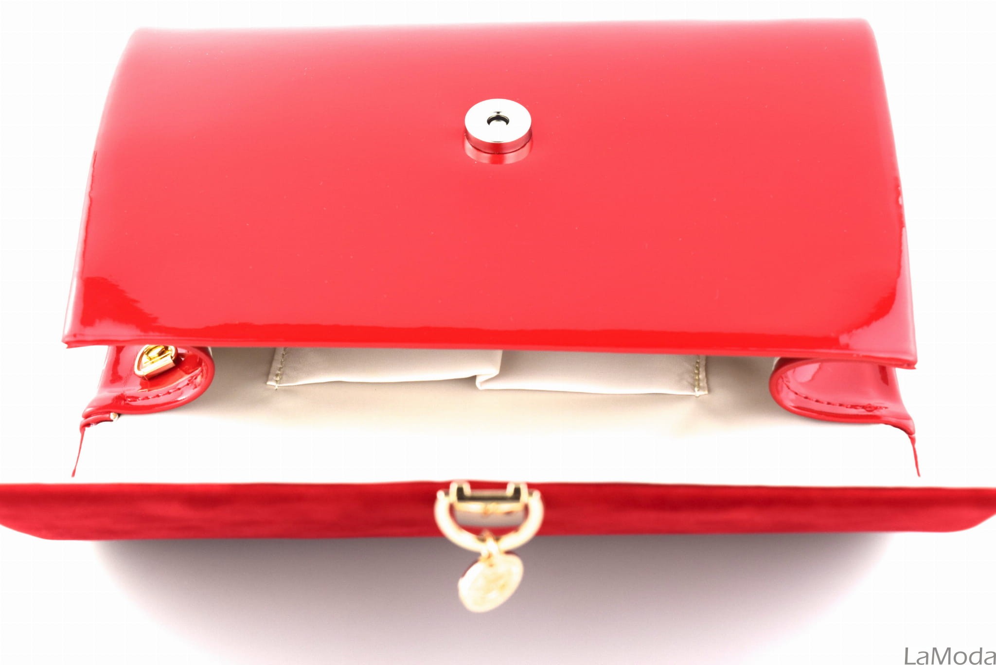 Torebka wizytowa lakierowana czerwona Wisiorek LA29